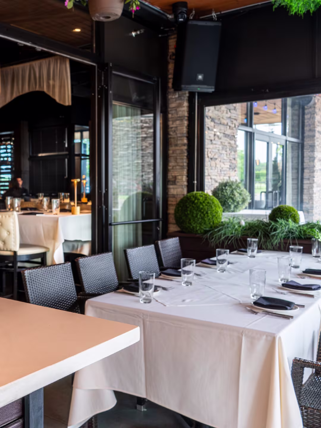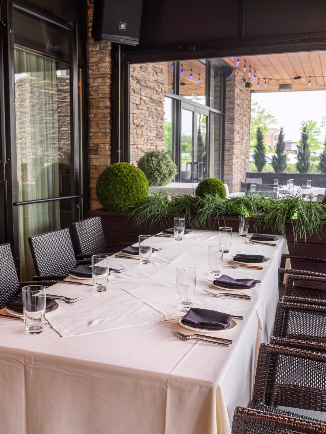 Our enchanting year-round patio accommodates a large number of guests, our versatile space features a private bar, projector screen, and customizable seating for receptions, rehearsal dinners, birthdays and access to our outdoor patio & fireplace.